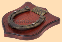 Размер медальона 19 на 22 см Медальон для подковы изготовлен из бука, покрашен под вишню и покрыт матовым лаком Размер подковы 13 на 13 см Подкова штампованная, покрыта патиной с золотом Размер таблички 4 на 7 см Табличка кованная, покрыта патиной с золотом Вес подковы - 900 гр. Производитель Россия