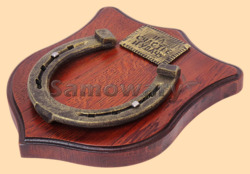 Размер медальона 19 на 22 см Медальон для подковы изготовлен из бука, покрашен под вишню и покрыт матовым лаком Размер подковы 13 на 13 см Подкова штампованная, покрыта патиной с золотом Размер таблички 4 на 7 см Табличка кованная, покрыта патиной с золотом Вес подковы - 900 гр. Производитель Россия