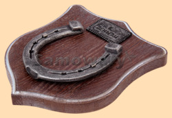 Размер медальона 19 на 22 см Медальон для подковы изготовлен из бука, покрашен под орех и покрыт матовым лаком Размер подковы 13 на 13 см Подкова штампованная, покрыта патиной с серебром Размер таблички 4 на 7 см Табличка кованная, покрыта патиной с серебром Вес подковы - 900 гр. Производитель Россия