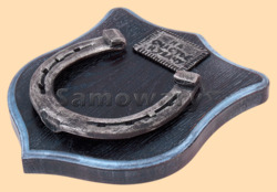 Размер медальона 19 на 22 см Медальон для подковы изготовлен из бука, покрашен под венге и покрыт матовым лаком Размер подковы 13 на 13 см Подкова штампованная, покрыта патиной с серебром Размер таблички 4 на 7 см Табличка кованная, покрыта патиной с серебром Вес подковы - 900 гр. Производитель Россия