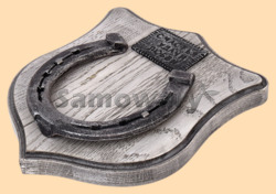 Медальон для подковы изготовлен из бука, покрашен под светлое дерево и покрыт матовым лаком