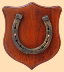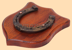 Медальон для подковы изготовлен из бука, покрашен под вишню и покрыт матовым лаком