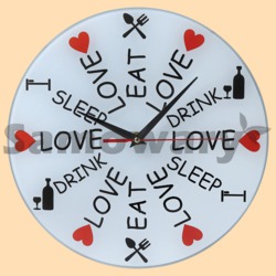 Каталог » Часы » Часы разные » Часы настенные Ешь Спи Люби (стеклянные)