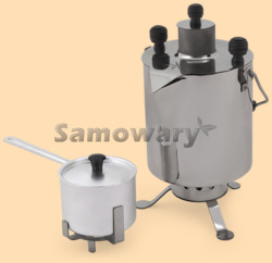 Самовар: - объем 2,5 литра - высота самовара 35 см - ширина самовара 27 см - самовар походный, можно использовать в походах и путешествиях, в комплекте рюкзак для транспортировки - материал: никелированная латунь (серебристый цвет) - покрытие не боится воды - растапливается с помощью дров или шишек - вес самовара - 4,2 кг Производитель Тула