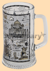 Каталог » Посуда » Пивные кружки стекло » Пивная кружка Москва (чёрно-бронзовая деколь, 330 мл)