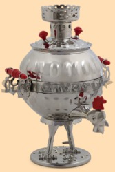 Самовар - - объем 3 литра - высота самовара 36 см - ширина самовара по ручки 28 см - при закипании издаёт свист - материал никелированная латунь - покрытие не боится воды (серебристый цвет) - ручки самовара изготовлены из пластика (по вашему желанию самовар может комплектоваться как чёрными, так и белыми ручками) - мощность ТЭНа 1 кВт, время закипания 15-20 минут - вес самовара 2,7 кг - производитель Россия (Тула)