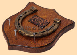 Медальон для подковы изготовлен из бука, покрашен под дуб и покрыт матовым лаком