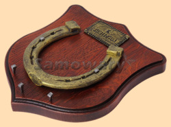 Медальон для подковы изготовлен из бука, покрашен под вишню и покрыт матовым лаком