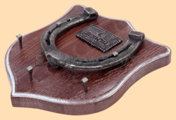Размер медальона 19 на 22 см, с дополнительными подвесами чтобы вешать ключи (ключница) Медальон для подковы изготовлен из бука, покрашен под орех и покрыт матовым лаком Размер подковы 13 на 13 см Подкова штампованная, покрыта патиной с серебром Размер таблички 4 на 7 см Табличка кованная, покрыта патиной с серебром Вес подковы - 900 гр. Производитель Россия