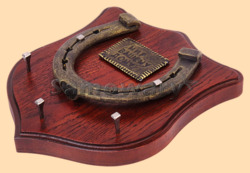Размер медальона 19 на 22 см, с дополнительными подвесами чтобы вешать ключи (ключница) Медальон для подковы изготовлен из бука, покрашен под вишню и покрыт матовым лаком Размер подковы 13 на 13 см Подкова штампованная, покрыта патиной с золотом Размер таблички 4 на 7 см Табличка кованная, покрыта патиной с золотом Вес подковы - 900 гр. Производитель Россия