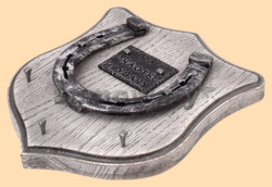 Размер медальона 19 на 22 см, с дополнительными подвесами чтобы вешать ключи (ключница) Медальон для подковы изготовлен из бука, покрашен под светлое дерево и покрыт матовым лаком Размер подковы 13 на 13 см Подкова штампованная, покрыта патиной с серебром Размер таблички 4 на 7 см Табличка кованная, покрыта патиной с серебром Вес подковы - 900 гр. Производитель Россия