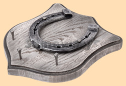 Размер медальона 19 на 22 см, с дополнительными подвесами чтобы вешать ключи (ключница) Медальон для подковы изготовлен из бука, покрашен под светлое дерево и покрыт матовым лаком Размер подковы 13 на 13 см Подкова штампованная, покрыта патиной с серебром Вес подковы - 850 гр. Производитель Россия