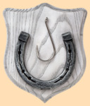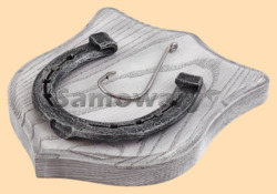 Размер медальона 19 на 22 см Медальон для подковы изготовлен из бука, покрашен под светлое дерево и покрыт матовым лаком Размер подковы 13 на 13 см Подкова штампованная, покрыта патиной с серебром В качестве декоративного элемента использован настоящий рыболовный крючёк Вес подковы - 850 гр. Производитель Россия