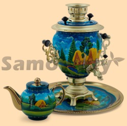 Каталог » Самовары ЭЛЕКТРИЧЕСКИЕ » Самовары электрические на 110 Вольт (для Америки) » Набор электрический Деревенька лето (3л, 110 Вольт, для Америки)