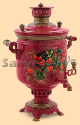 Каталог » Самовары жаровые (дровяные, угольные) » Самовары жаровые расписные (дровяные, угольные) » Самовар угольный Клубника на красном банка (7л)