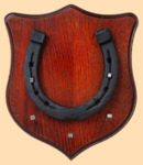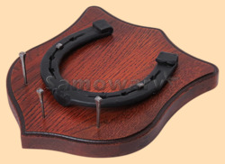 Медальон для подковы изготовлен из бука, покрашен под вишню и покрыт матовым лаком