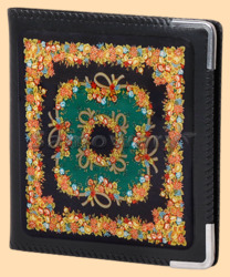 Визитница большая павлопосадский платок Рябиновые бусы (квадратная) (арт. 43778)