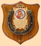 Каталог » Подковы на Счастье и Удачу » Подковы Остров Сокровищ с молитвами » Подкова Казанская Божья Матерь (цвет медальона дуб, подкова патина с золотом, ключница)