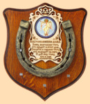 Медальон для подковы изготовлен из бука, покрашен под дуб и покрыт матовым лаком