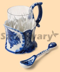 В комплекте: подстаканник, хрустальный стакан, керамическая ложка