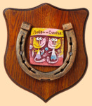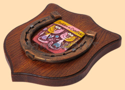 Размер медальона 19 на 22 см Медальон для подковы изготовлен из бука, покрашен под дуб и покрыт матовым лаком Размер подковы 13 на 13 см Подкова штампованная, покрыта патиной с золотом По центру подковы размещена декоративная керамическая вставка Вес подковы - 900 гр. Производитель Россия