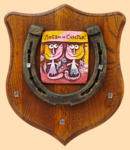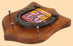 Размер медальона 19 на 22 см, с дополнительными подвесами чтобы вешать ключи (ключница) Медальон для подковы изготовлен из бука, покрашен под дуб и покрыт матовым лаком Размер подковы 13 на 13 см Подкова штампованная, покрыта патиной с золотом По центру подковы размещена декоративная керамическая вставка Вес подковы - 900 гр. Производитель Россия