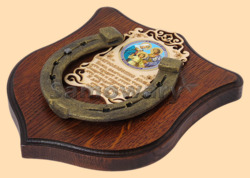 Каталог » Подковы на Счастье и Удачу » Подковы Остров Сокровищ с молитвами » Подкова Святое Семейство (цвет медальона дуб, подкова патина с золотом)