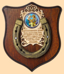 По центру подковы размещена деревянная табличка размером 8 на 13 см с ликом святого и молитвой на Благословение дома