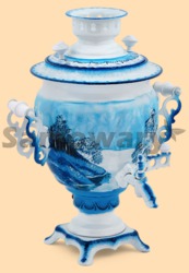 Самовар электрический Гжель пейзаж Лето (3л, 110 Вольт, для Америки) (арт. 44946)