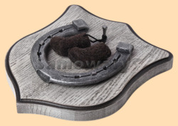 Размер медальона 19 на 22 см Медальон для подковы изготовлен из бука, покрашен под светлое дерево и покрыт матовым лаком Размер подковы 13 на 13 см Подкова штампованная, покрыта патиной с серебром В качестве декоративного элемента использованы настоящие сувенирные валенки из овечьей шерсти Вес подковы - 850 гр. Производитель Россия
