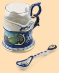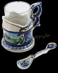В комплекте: подстаканник, хрустальный стакан, керамическая ложка Материал: керамика Производитель Гжель