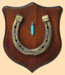 Размер медальона 19 на 22 см Медальон для подковы изготовлен из бука, покрашен под дуб и покрыт матовым лаком Размер подковы 13 на 13 см Подкова штампованная, покрыта патиной с золотом В качестве декоративного элемента использована подвеска с бирюзой Вес подковы - 850 гр. Производитель Россия