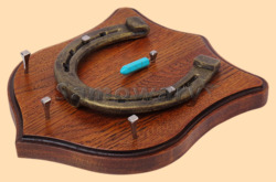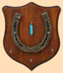 Размер медальона 19 на 22 см, с дополнительными подвесами чтобы вешать ключи (ключница) Медальон для подковы изготовлен из бука, покрашен под дуб и покрыт матовым лаком Размер подковы 13 на 13 см Подкова штампованная, покрыта патиной с золотом В качестве декоративного элемента использована подвеска с бирюзой Вес подковы - 850 гр. Производитель Россия