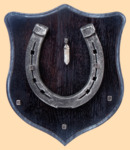 Медальон для подковы изготовлен из бука, покрашен под венге и покрыт матовым лаком