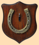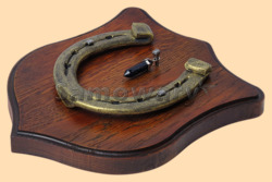 Медальон для подковы изготовлен из бука, покрашен под дуб и покрыт матовым лаком