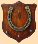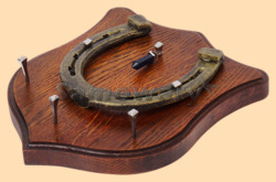Медальон для подковы изготовлен из бука, покрашен под дуб и покрыт матовым лаком