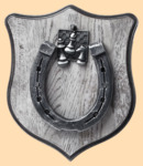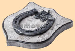 Медальон для подковы изготовлен из бука, покрашен под светлое дерево и покрыт матовым лаком