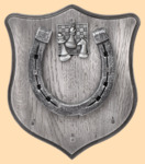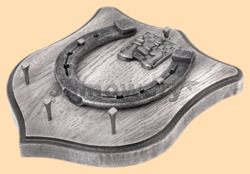 Размер медальона 19 на 22 см, с дополнительными подвесами чтобы вешать ключи (ключница) Медальон для подковы изготовлен из бука, покрашен под светлое дерево и покрыт матовым лаком Размер подковы 13 на 13 см Подкова штампованная, покрыта патиной с серебром В качестве декоративного элемента использована шахматная медаль (серебро) Вес подковы - 850 гр. Производитель Россия