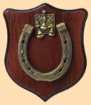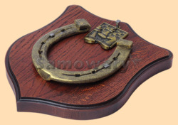 Размер медальона 19 на 22 см Медальон для подковы изготовлен из бука, покрашен под вишню и покрыт матовым лаком Размер подковы 13 на 13 см Подкова штампованная, покрыта патиной с золотом В качестве декоративного элемента использована шахматная медаль (золото) Вес подковы - 850 гр. Производитель Россия