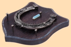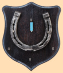 Размер медальона 19 на 22 см, с дополнительными подвесами чтобы вешать ключи (ключница) Медальон для подковы изготовлен из бука, покрашен под венге и покрыт матовым лаком Размер подковы 13 на 13 см Подкова штампованная, покрыта патиной с серебром В качестве декоративного элемента использована подвеска с "лунным камнем" Вес подковы - 850 гр. Производитель Россия