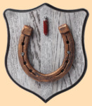 Медальон для подковы изготовлен из бука, покрашен под светлое дерево и покрыт матовым лаком