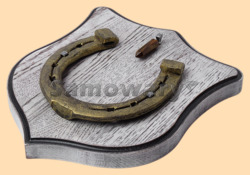 Размер медальона 19 на 22 см Медальон для подковы изготовлен из бука, покрашен под светлое дерево и покрыт матовым лаком Размер подковы 13 на 13 см Подкова штампованная, покрыта патиной с золотом В качестве декоративного элемента использована подвеска с тигровым глазом Вес подковы - 850 гр. Производитель Россия