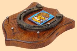 Размер медальона 19 на 22 см, с дополнительными подвесами чтобы вешать ключи (ключница) Медальон для подковы изготовлен из бука, покрашен под дуб и покрыт матовым лаком Размер подковы 13 на 13 см Подкова штампованная, покрыта патиной с золотом По центру подковы размещена декоративная керамическая вставка Вес подковы - 900 гр. Производитель Россия