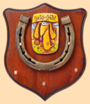 Медальон для подковы изготовлен из бука, покрашен под вишню и покрыт матовым лаком