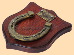 Медальон для подковы изготовлен из бука, покрашен под вишню и покрыт матовым лаком