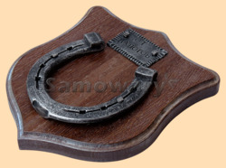 Медальон для подковы изготовлен из бука, покрашен под орех и покрыт матовым лаком