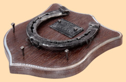 Размер медальона 19 на 22 см, с дополнительными подвесами чтобы вешать ключи (ключница) Медальон для подковы изготовлен из бука, покрашен под орех и покрыт матовым лаком Размер подковы 13 на 13 см Подкова штампованная, покрыта патиной с серебром Размер таблички 4 на 7 см Табличка кованная, покрыта патиной с серебром Вес подковы - 900 гр. Производитель Россия