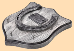 Медальон для подковы изготовлен из бука, покрашен под светлое дерево и покрыт матовым лаком