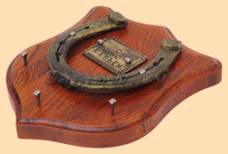 Размер медальона 19 на 22 см, с дополнительными подвесами чтобы вешать ключи (ключница) Медальон для подковы изготовлен из бука, покрашен под вишню и покрыт матовым лаком Размер подковы 13 на 13 см Подкова штампованная, покрыта патиной с золотом Размер таблички 4 на 7 см Табличка кованная, покрыта патиной с золотом Вес подковы - 900 гр. Производитель Россия