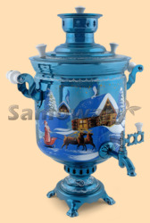 Каталог » Самовары жаровые (дровяные, угольные) » Самовары жаровые расписные (дровяные, угольные) » Самовар угольный Домик зима Презент банка (7л)